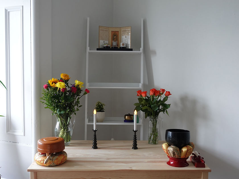 If you are a member or a non-member who wants to follow the RK’s style, you are advised to chant O-daimoku three times facing the Gohonzon, which is something like making a greeting when visiting another’s home, as well as a prayer for guidance and protection through the practice at the centre.